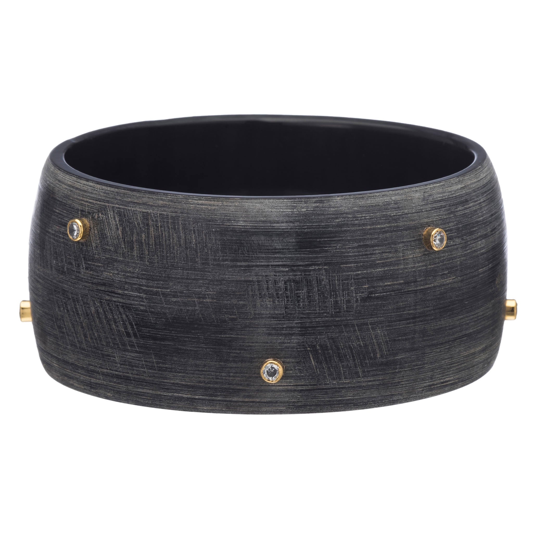 Matt dark gray buffalo horn bangle with scattered crystals. Buffalo horn is a natural material, each item has a unique character and may vary from image.