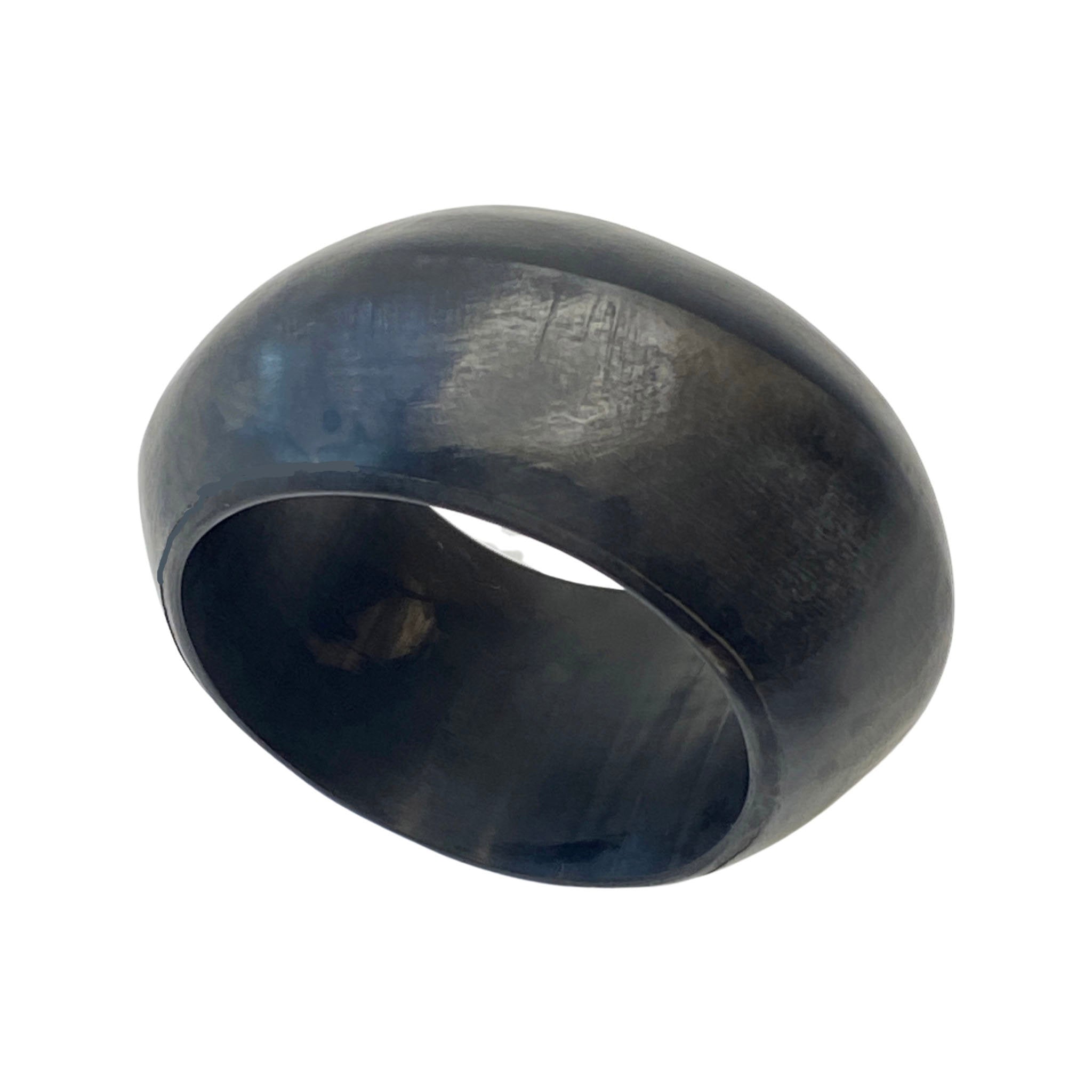 Genuine black horn 3-dimensional formed bangle with a matte finish. Buffalo horn is a natural material, each item has a unique character and may vary from image.