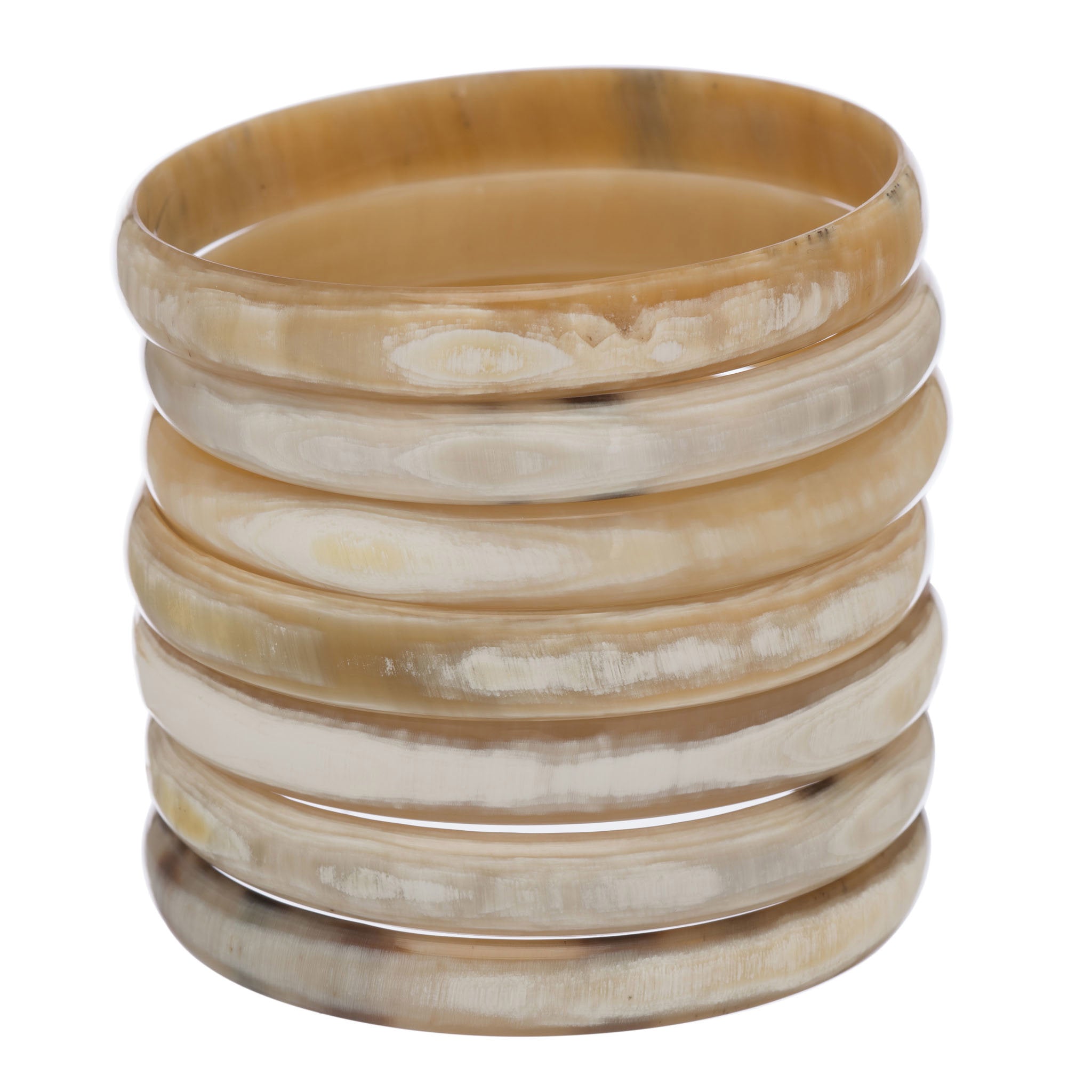 Natural buffalo horn set of 7 narrow bangles. Light . Buffalo horn is a natural material, each item has a unique character and may vary from image.