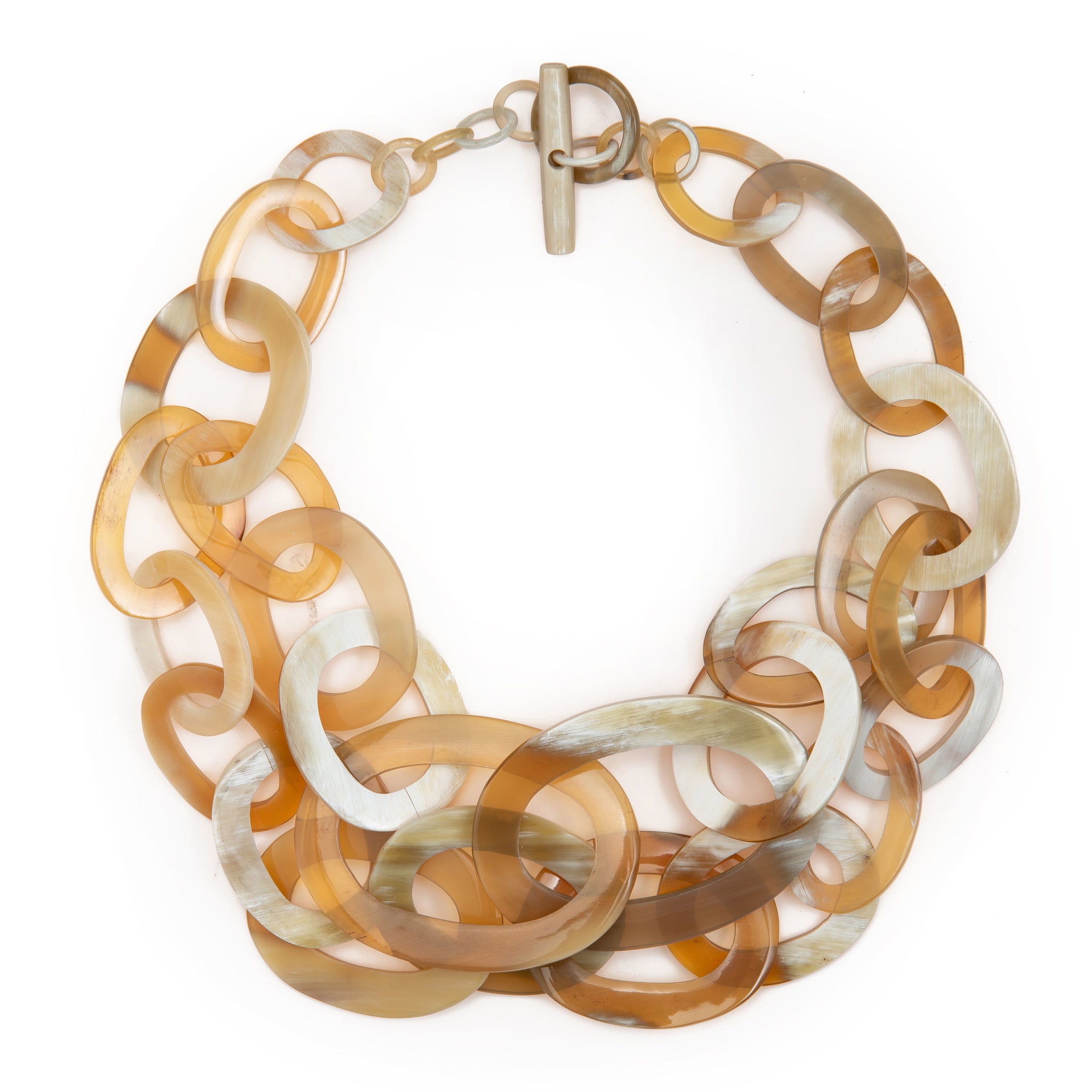 Double buffalo horn chain on toggle. Buffalo horn is a natural material, each item has a unique character and may vary from image.