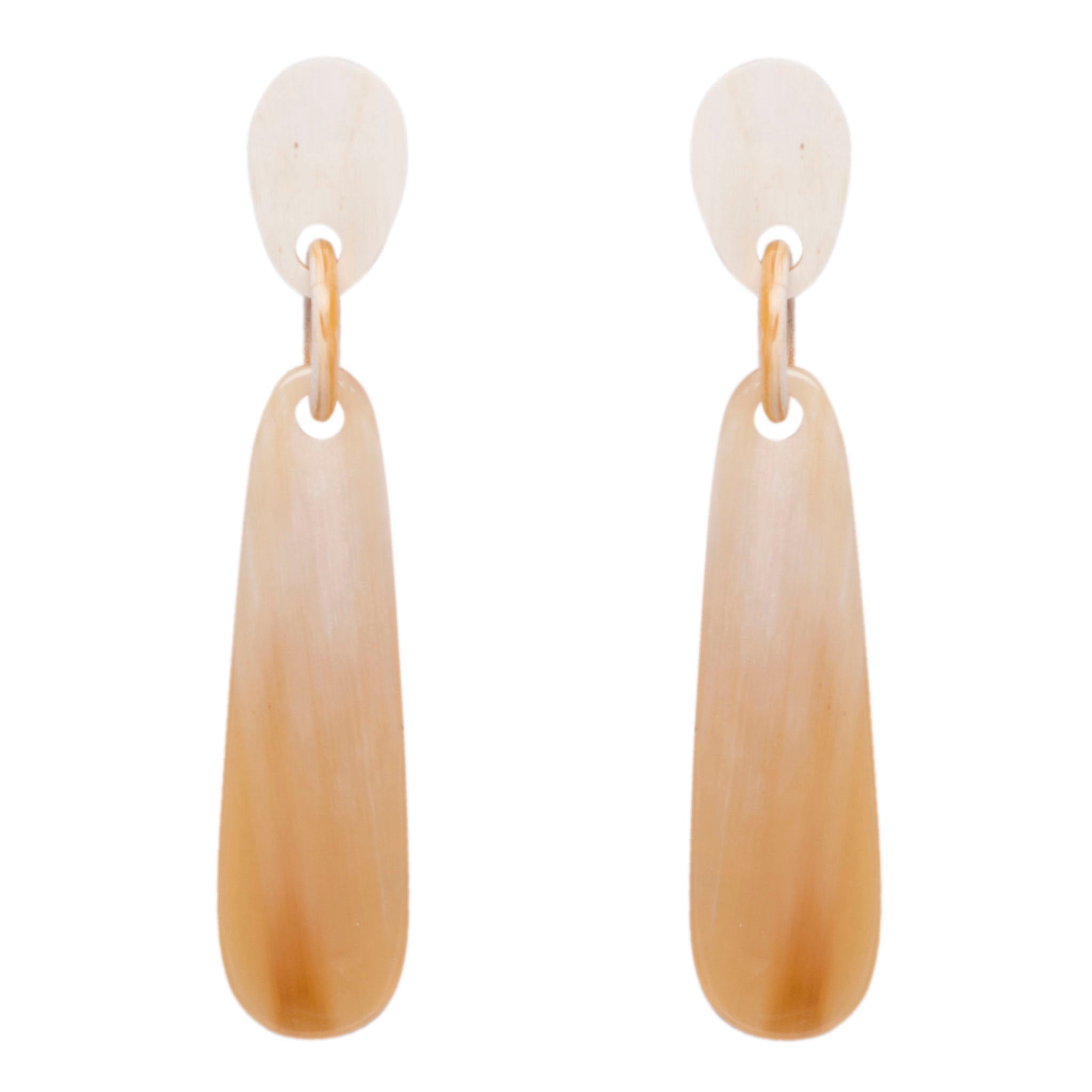 Natural light color horn, stick earring on the post. Buffalo horn is a natural material, each item has a unique character and may vary from image.