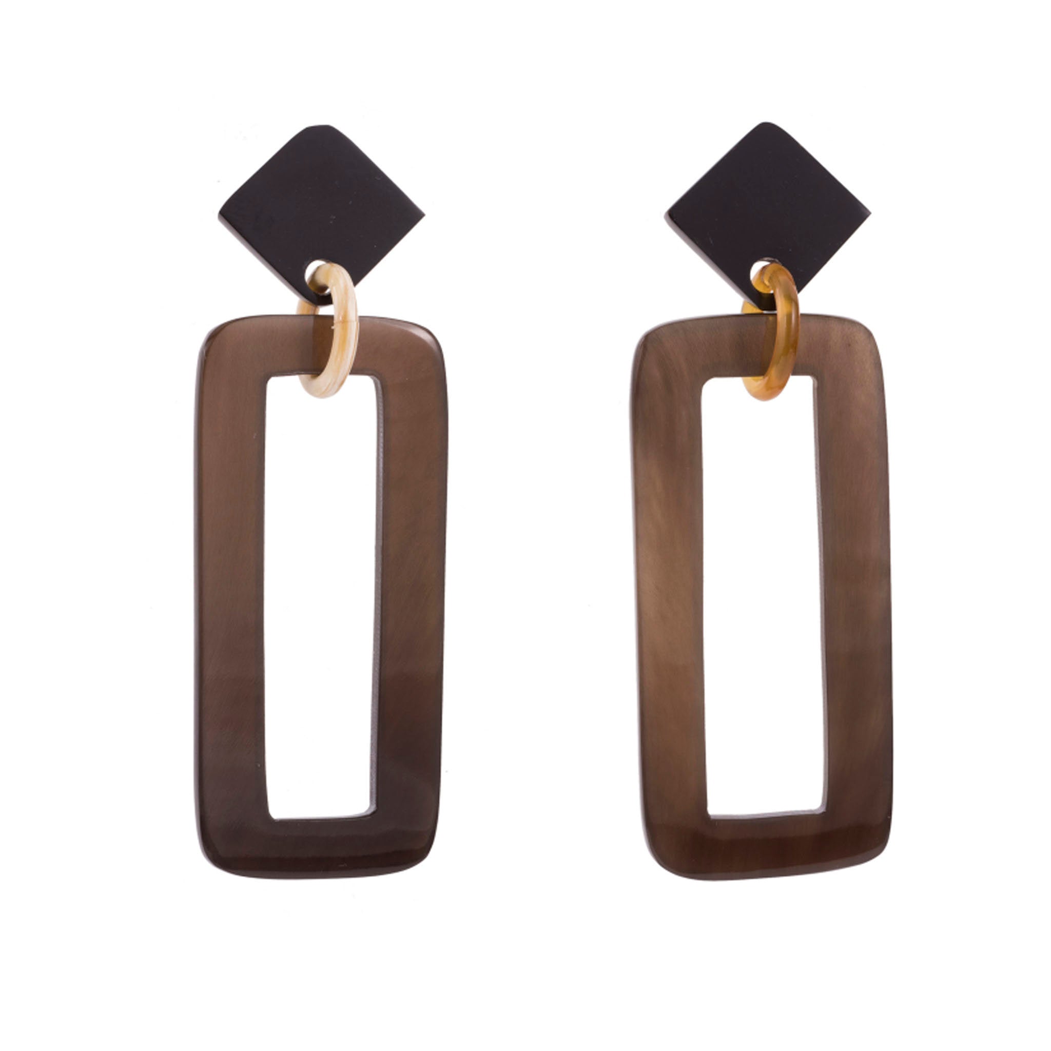 Genuine honey buffalo horn rectangle dropped from the square on the post. Buffalo horn is a natural material, each item has a unique character and may vary from image.