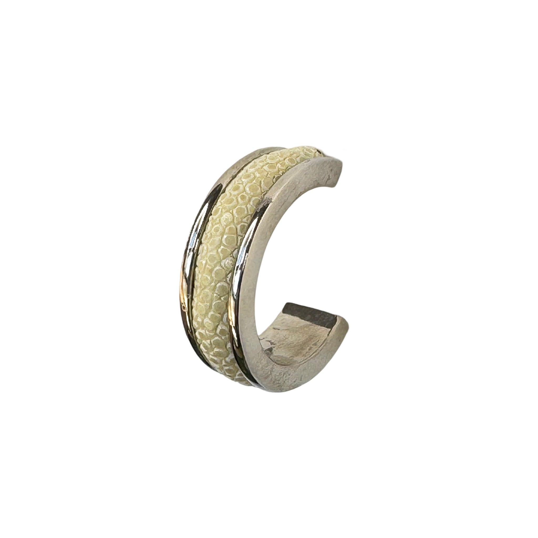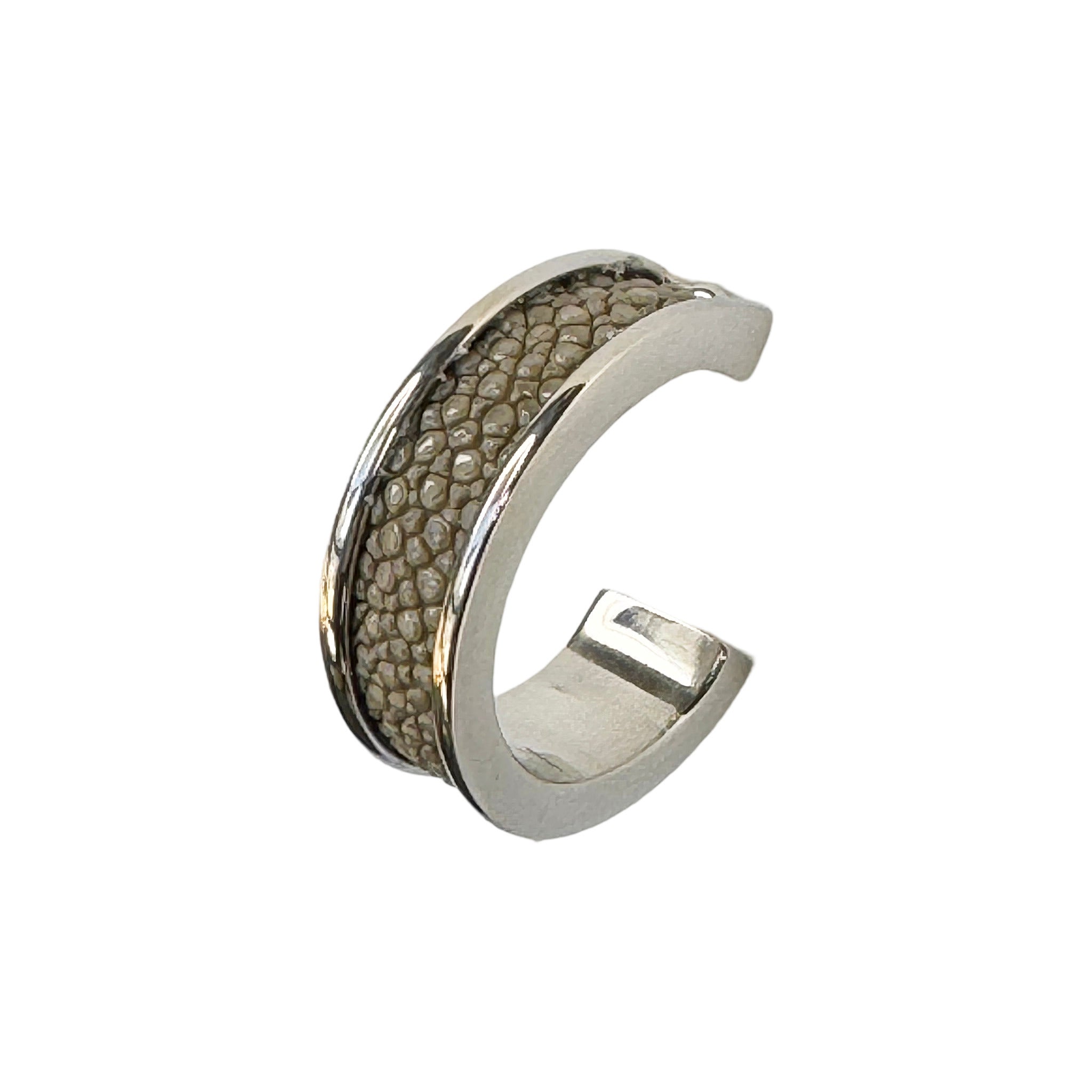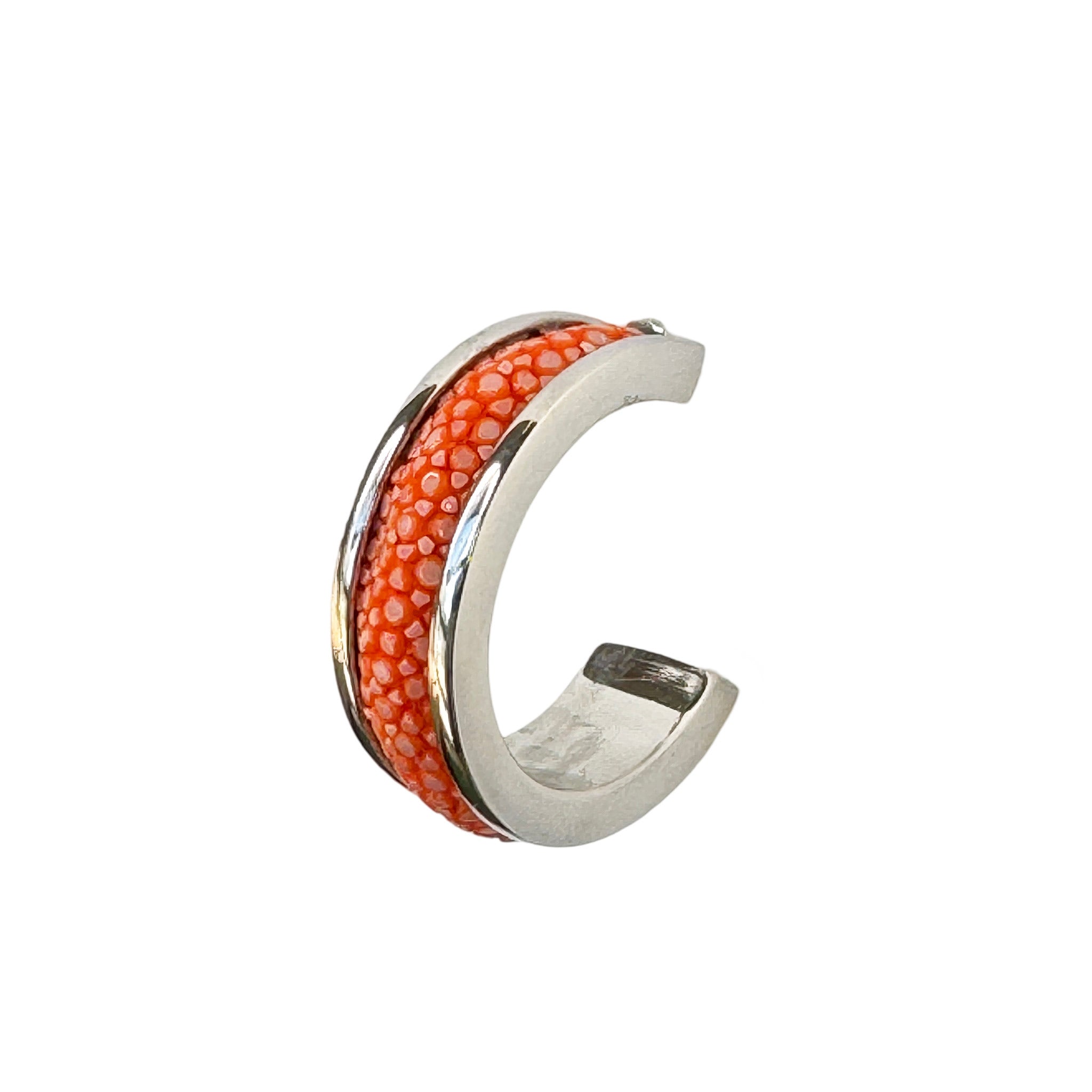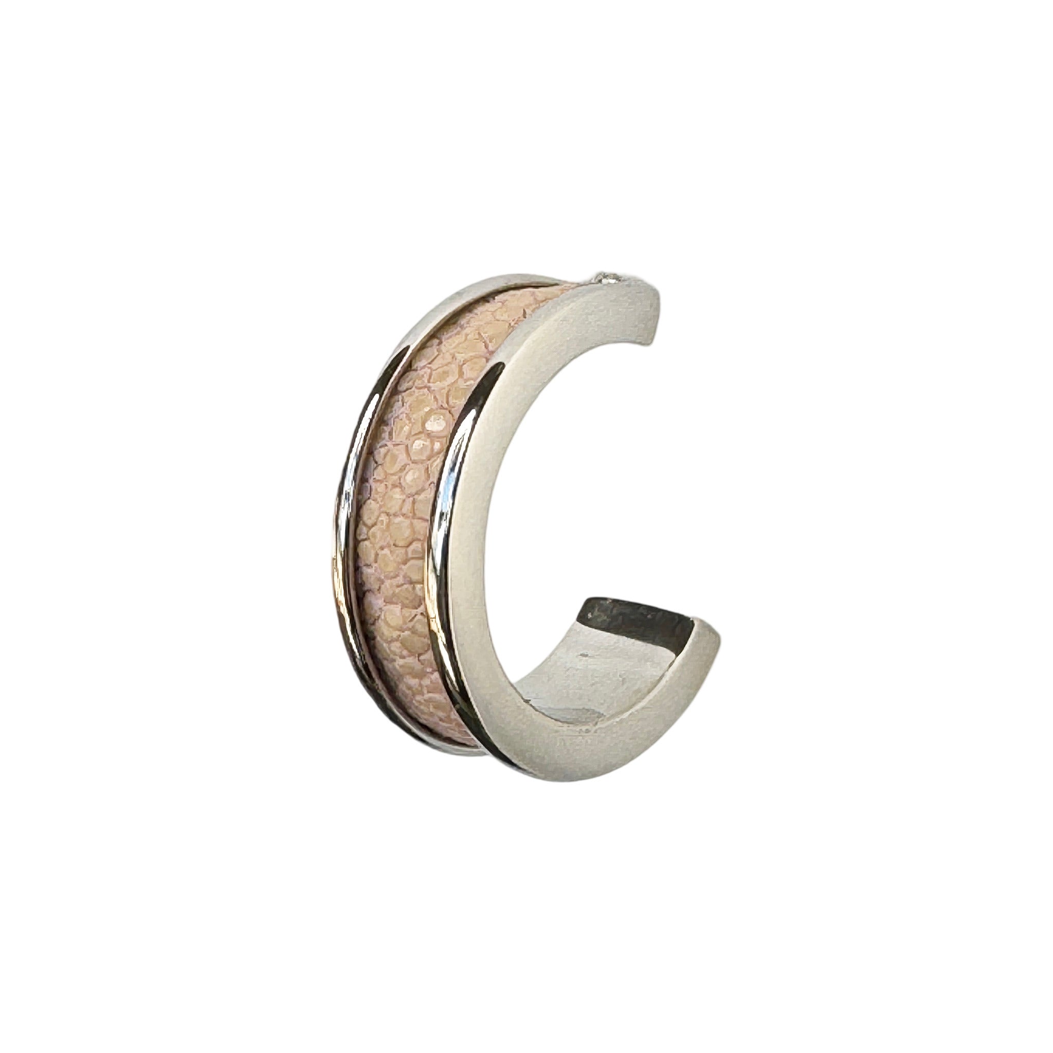 SVIVO Studios offers LUNA, our white gold plated 3/8 in wide hoop 1.5 in diameter hoop in 13 custom shagreen colors.