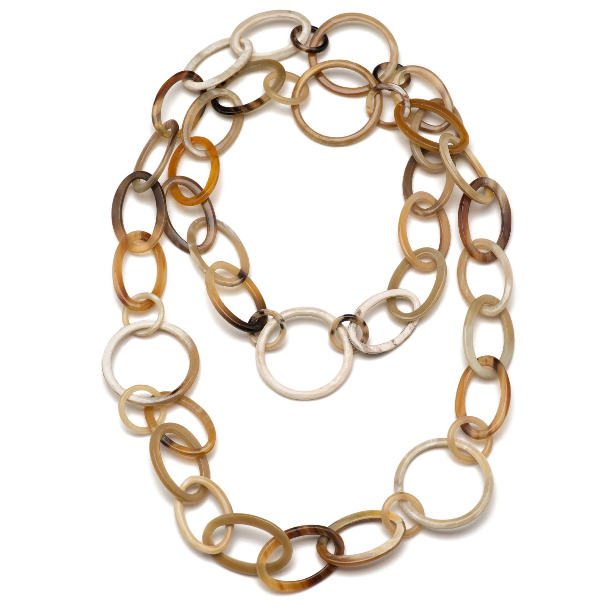 Light and dark natural buffalo horn 65 IN oval & circle links.necklace. Buffalo horn is a natural material, each item has a unique character and may vary from image.