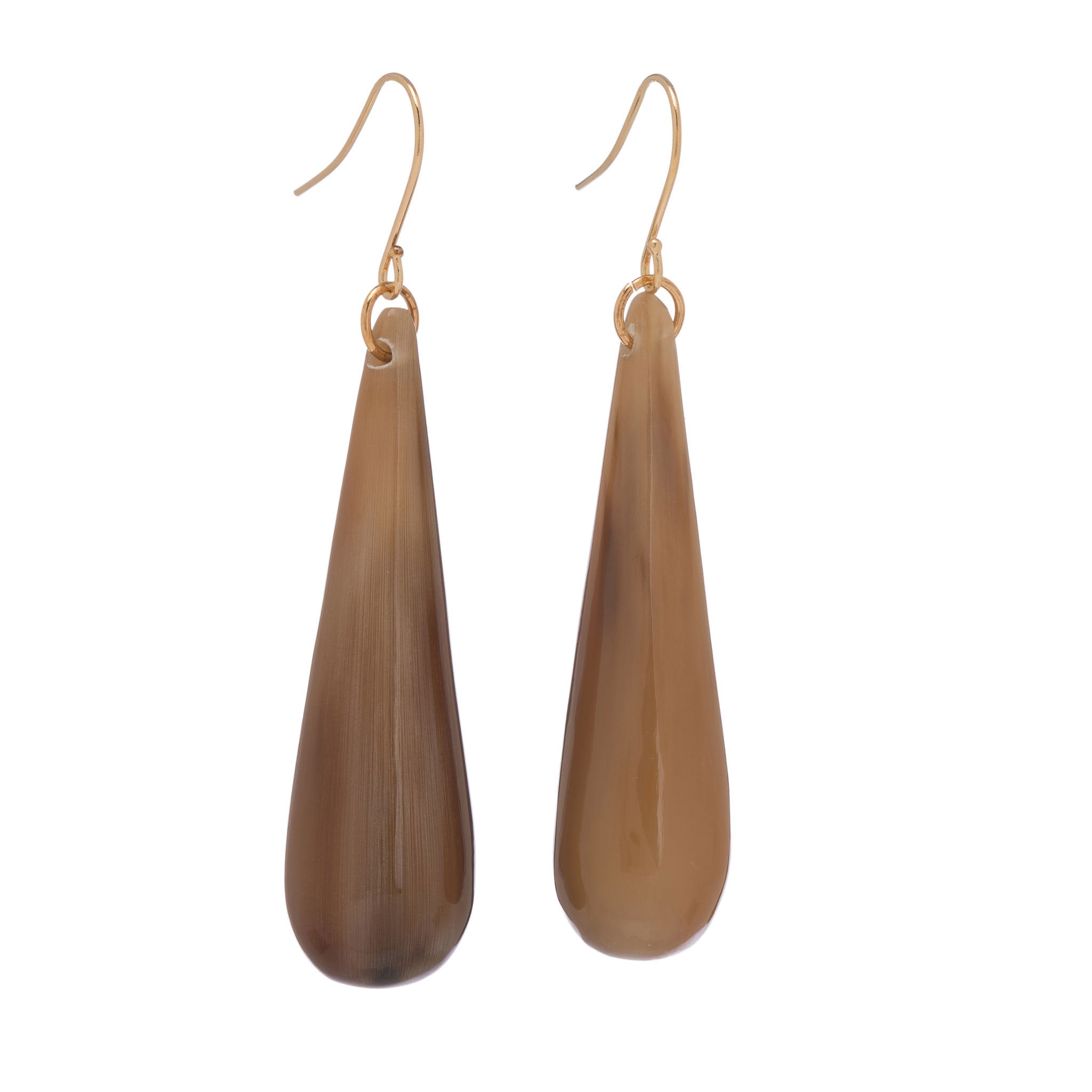 Buffalo horn teardrops on gold-plated wires. 2.5 IN