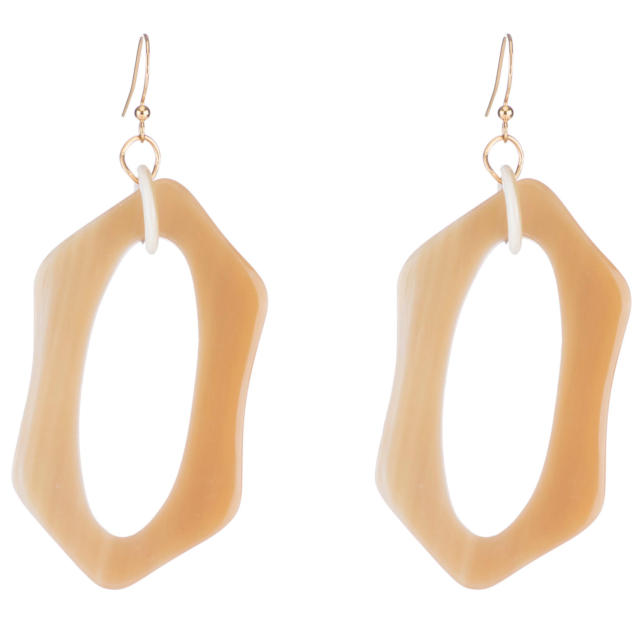 CTE46 Natural Horn Dangle Oval Earring On Wire