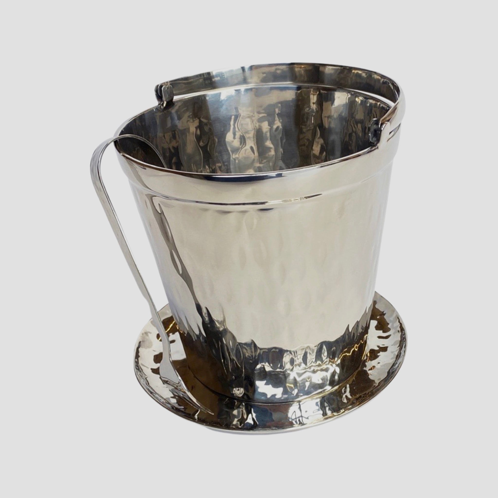 VIVO hand-made, hammered stainless steel small-size ice pail with handle, &tongs, and round tray complete this elevated personal service.