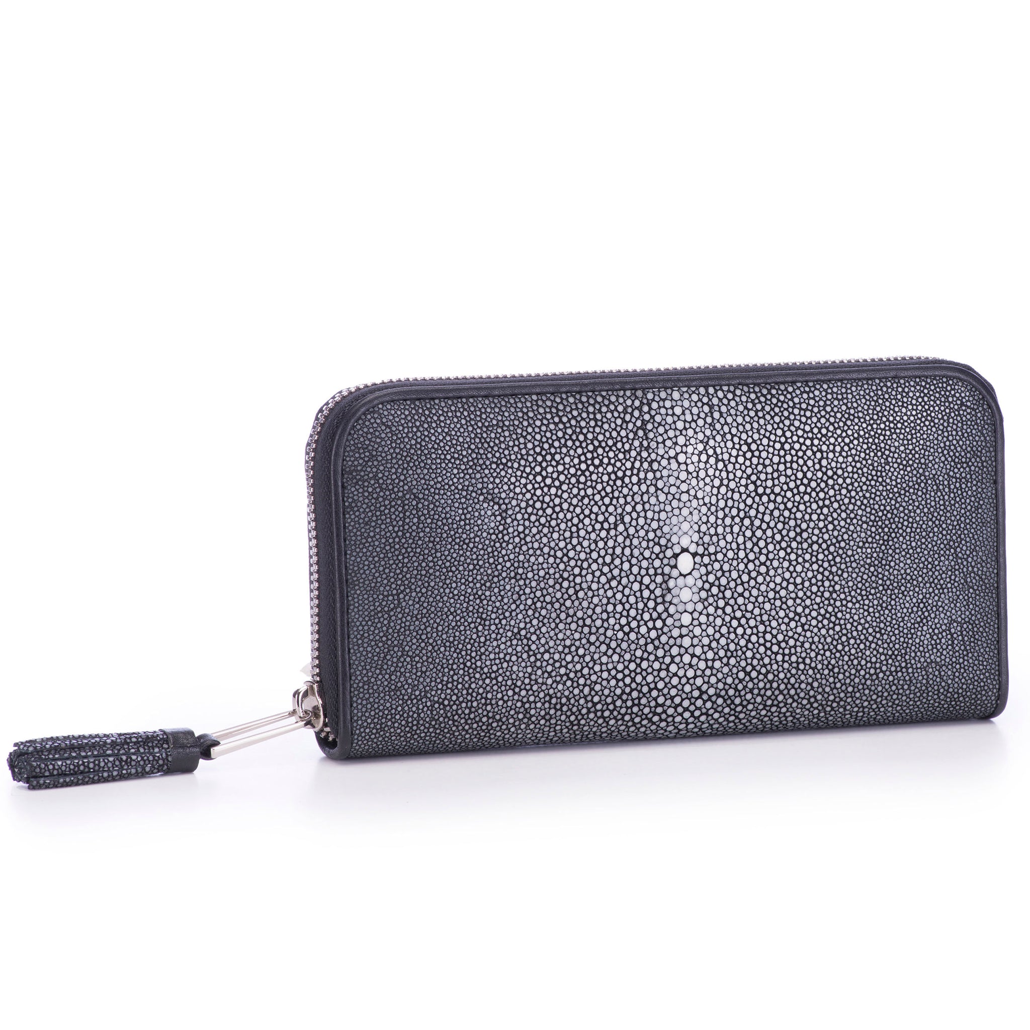 Who says you can’t have a bit of security with your style? Cora is an absolutely lush wallet that illustrates its beautiful, genuine shagreen exterior. This clutch-style wallet is mutable because it can be taken out on its own as a convenient (and sassy!) clutch or live inside your handbag as a wallet. Cora closes with a zipper, complete with a flirty tassel. Crafted with a leather interior, Cora offers a lot of space to keep things organised inside thanks to its several pockets, including one zipped, as well as plentiful card slots for your credit cards. Cora is finished with a linen lining and silver hardware and has six colour options.