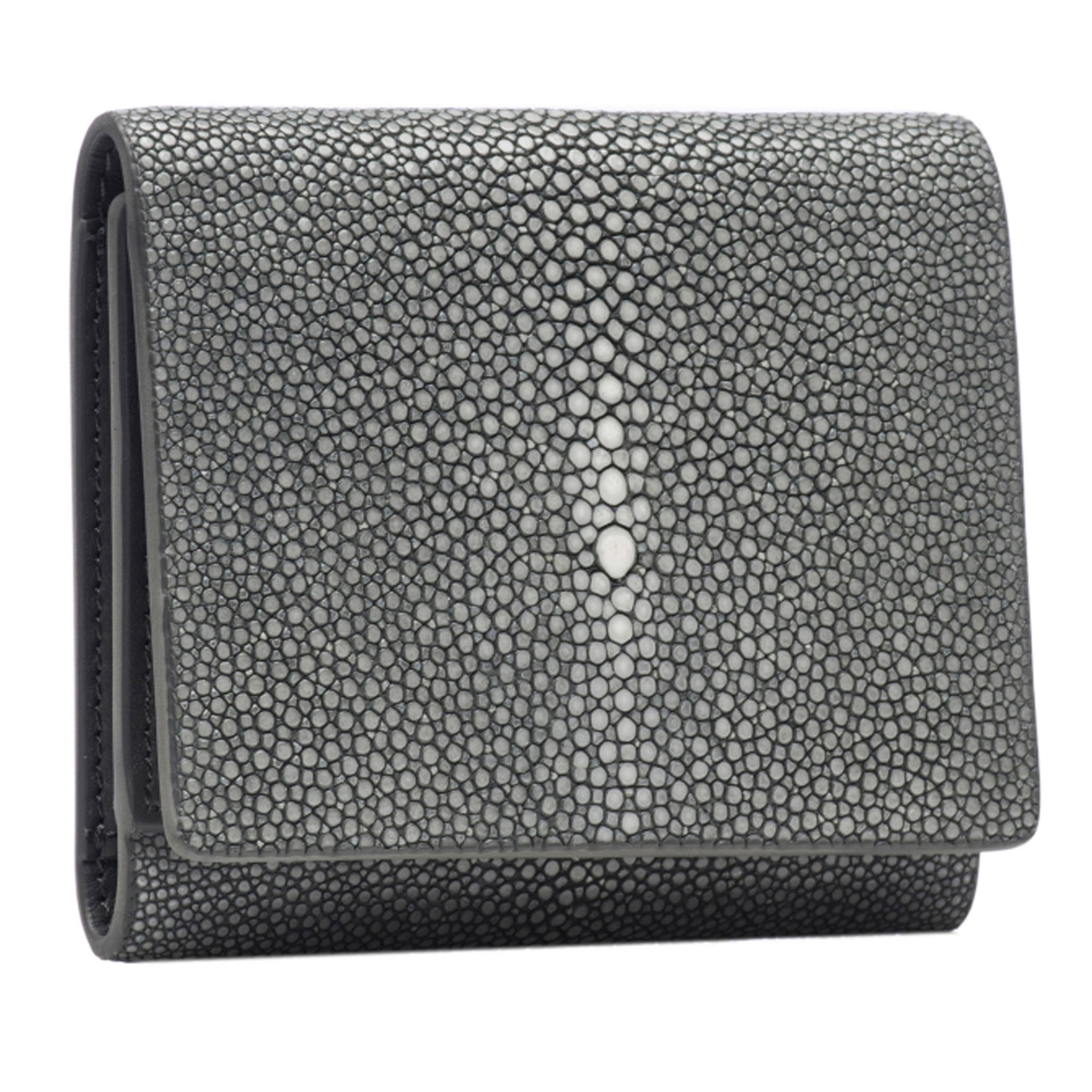 Feast your eyes on Evan. This slick men’s tri-fold is crafted with genuine leather throughout. The outside is a beautiful showcase of genuine shagreen and the interior is trimmed with smooth Napa leather. The wallet’s inside is home to pockets that are perfect for holding credit cards and more, with a traditional wider pocket for holding bills. Evan has a photo ID window on the inside as well that is kissed with linen lining and is finished with a plastic overlay protector. This handsome wallet, quite unique in its aesthetics, is available in two colours - black or steel grey.